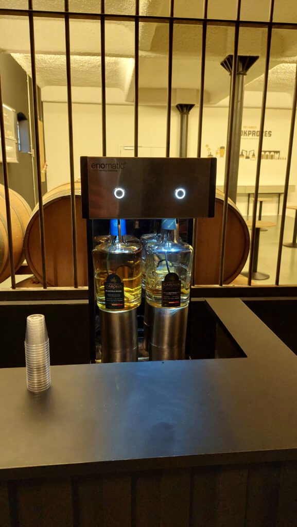 Bij de stokerij mogen wij voor het eerst tijdens de rondleiding de producten testen. Ze hebben hiervoor zelfs een whiskeytap!