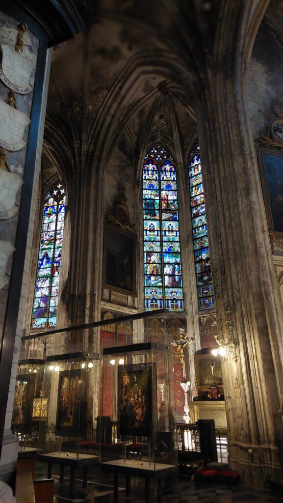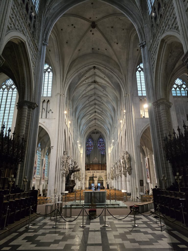 Na ons bezoek aan de brouwerij besluiten wij ook om de binnenstad te ontdekken. Het regent vandaag veel. De kathedraal is open en biedt mooi onderdak tegen het regen. Het is een flinke kathedraal met veel versieringen en grote glas-in-loodramen.