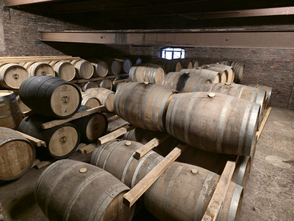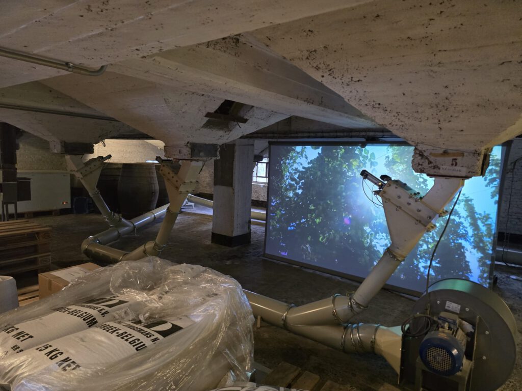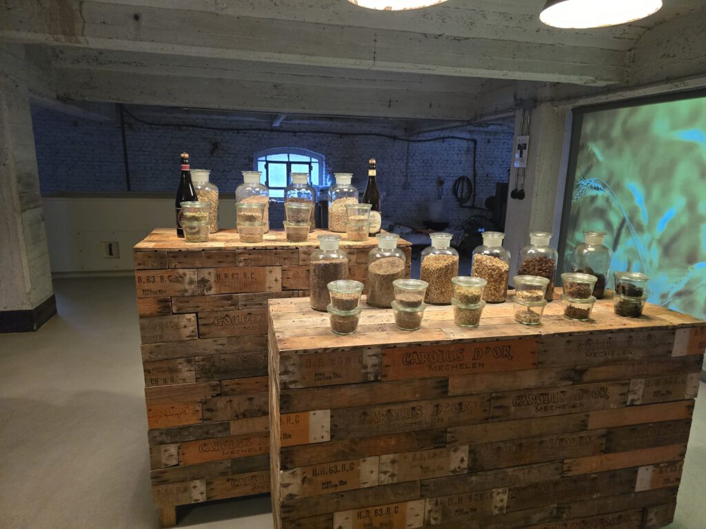 Onze tour begint in de vroegere mouterij. Voorheen vermoutte de brouwerij hun eigen granen voor eigen gebruik en voor 30 brouwerijen in de omgeving. Deze 30 brouwerijen zijn helaas allemaal gesloten en verdwenen. En zo ook de mouterij. De mouterij mag echter niet worden gesloopt omdat het cultureel erfgoed is.